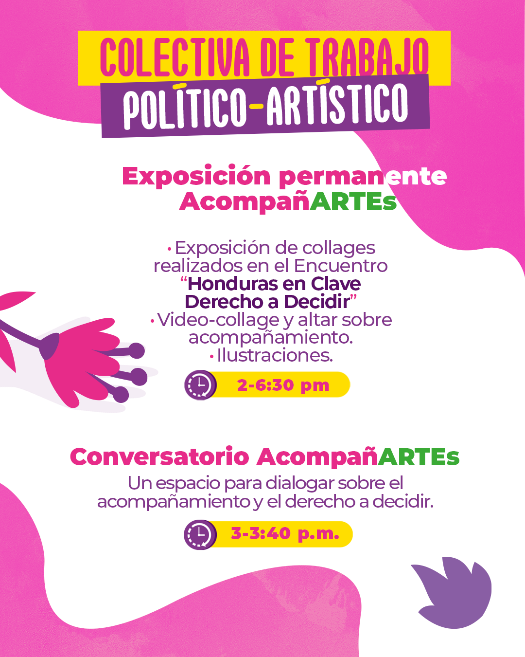 Durante de este encuentro, las integrantes de la colectiva de trabajo político-artístico desarrollaron de manera simultánea, tanto en Tegucigalpa como en Choluteca, un taller creativo donde las personas participantes —provenientes de diferentes realidades— expresaron sus experiencias, emociones y reflexiones sobre el acompañamiento feminista y crearon collages a partir de ello.
